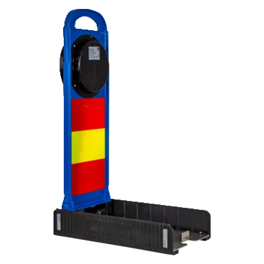 Stabiler Edelstahlfuss mit Kunststoffstapelschienen. Durch den neuen Fuss ist eine sichere Stapelbarkeit bei mehreren FlashMax Leuchten übereinander gewährleistet. Zusätliche Anti-Rutsch-Noppen bieten einen sicheren Stand auf glatten Flächen und erhöhen nochmals die Standsicherheit bei vorbei fahrenden Fahrzeugen.