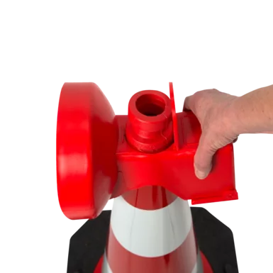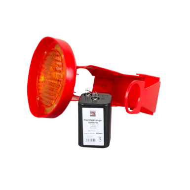 Durch einfaches Aufsetzen auf Ihren Leitkegel wird die Leuchte per Kontakt aktiviert und gibt ein gleichmässiges LED Blinklicht ab, welches heranfahrende Fahrzeuge auf die nahende Gefahrensituation aufmerksam macht.