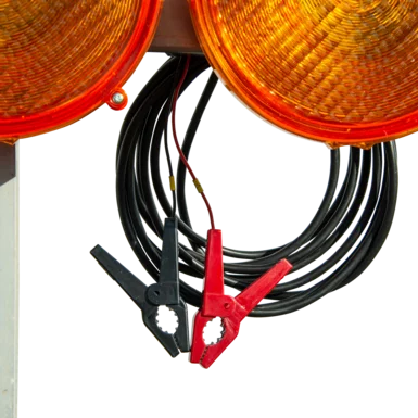 Die Stromversorgung erfolgt über ein 3,5 m lange Anschlussleitung mit Batterieklemmen für 12 V Akkus.