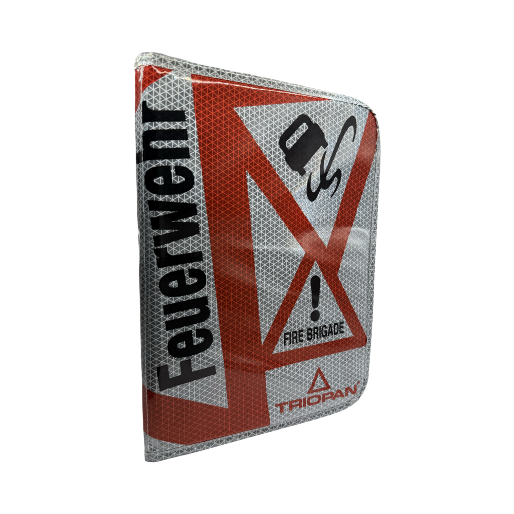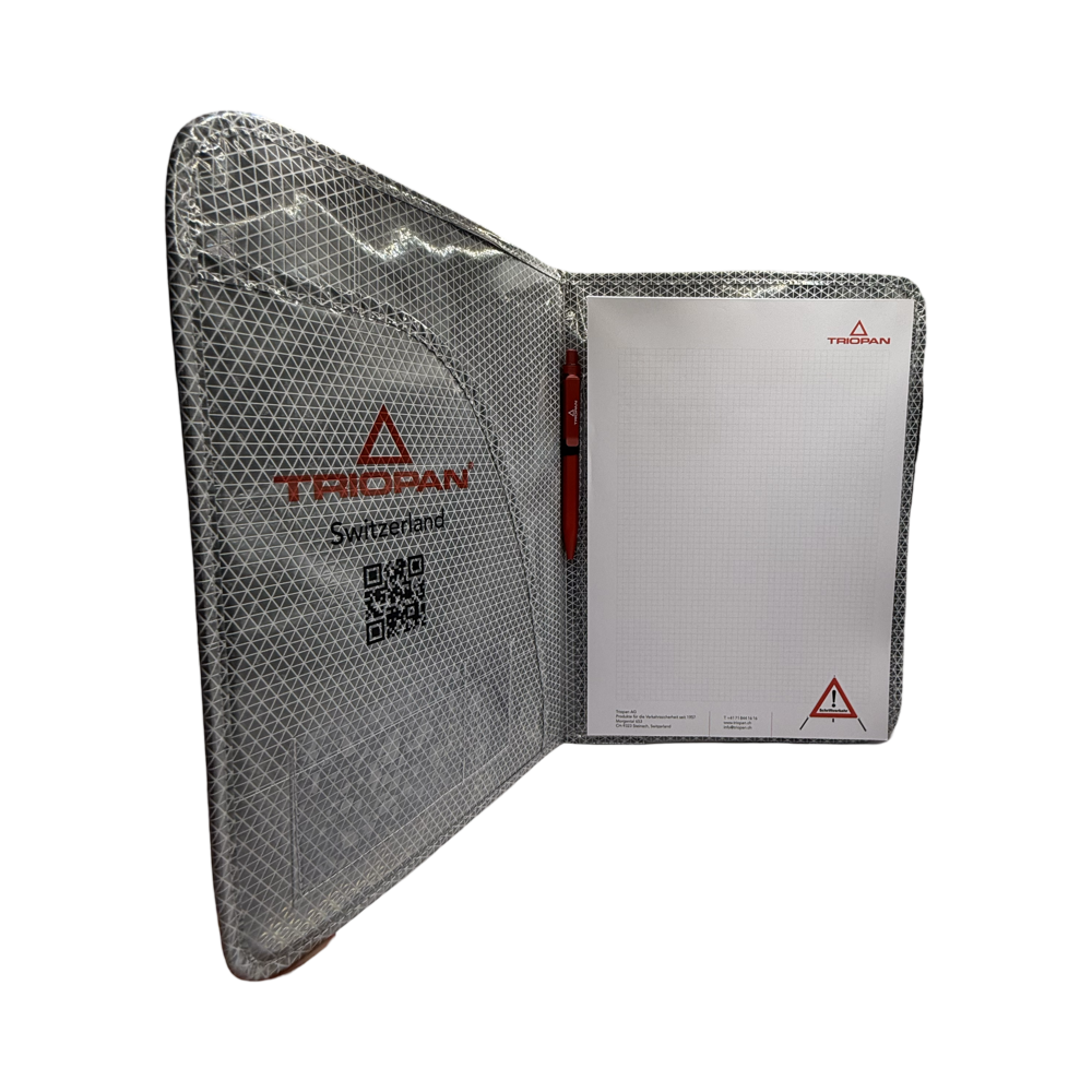 Mit unseren Schreibmappen aus Triopan R2-Material sind Sie SICHER unterwegs und werden GESEHEN, ob auf der Baustelle im Einsatzwagen oder im Büro.
