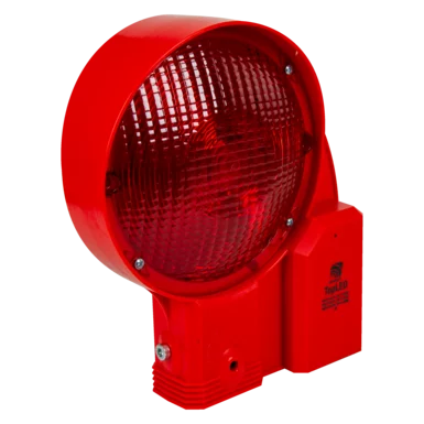 TopLED Sicherheitsleuchte, BASt-geprüft nach TL-Warnleuchten, zum schnellen, sicheren Einsatz bei Vollsperrungen auf allen Kunststoff-Absperrschrankengittern.